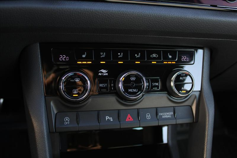 8 x airbag, ABS, aut. aktivace výstražných světlometů, aut. klimatizace, aut. převodovka, aut. zabrždění v kopci, centrál dálkový, el. okna, el. seřiditelná sedadla, el. sklopná zrcátka, el. víko zavazadlového prostoru, el. zrcátka, litá kola, mlhovky, multifunkční volant, palubní počítač, posilovač řízení, potahy kůže, satelitní navigace, senzor stěračů, senzor světel, stabilizace podvozku (ESP), startování tlačítkem, střešní nosič, tempomat, vyhřívaná sedadla, vyhřívaná zrcátka, vyhřívané přední sklo, výškově nastavitelná sedadla, zadní světla LED, parkovací asistent, přední světla LED, USB, hands free, dvouzónová klimatizace, bluetooth, parkovací kamera, start-stop systém, nouzové brždění (PEBS), sledování únavy řidiče, isofix, parkovací senzory přední, parkovací senzory zadní, kožené čalounění, LED denní svícení, ambientní osvětlení interiéru, Android Auto, Apple CarPlay, dotykové ovládání palubního počítače, hlasové ovládání palubního počítače, paměť nastavení sedadla řidiče, řazení pádly pod volantem, volba jízdního režimu